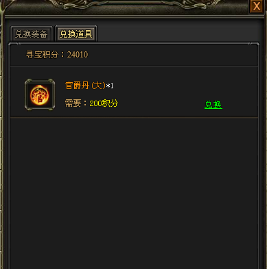 寻宝积分兑换功能中新增官爵丹(小)、官爵丹(大)可兑换,使用寻宝积分可兑换。
