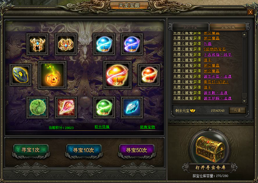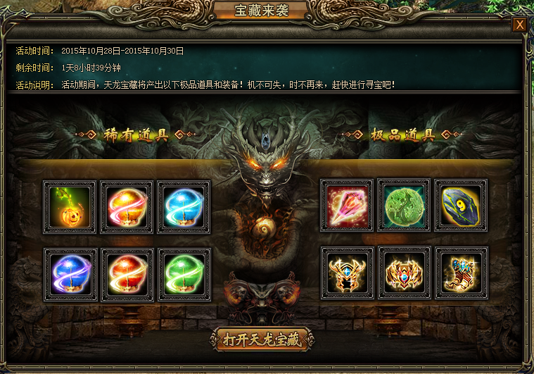 活动内容:活动期间,天龙宝藏中将产出南瓜灯(幻武)、9级宝石等各种珍稀道具!机不可失!