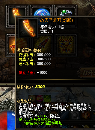 活动内容:活动期间,天龙宝藏中进行寻宝将有几率获得重生幻灵、神力戒指、战天圣龙刀(幻武)、战天传奇套装、天焰战皇龙等极品道具。