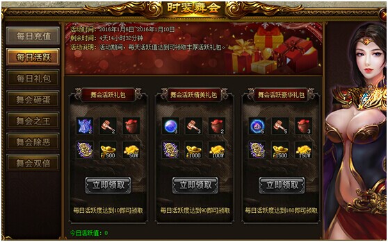 活动说明:活动期间,每天活跃值达到一定条件可领取丰厚奖励!