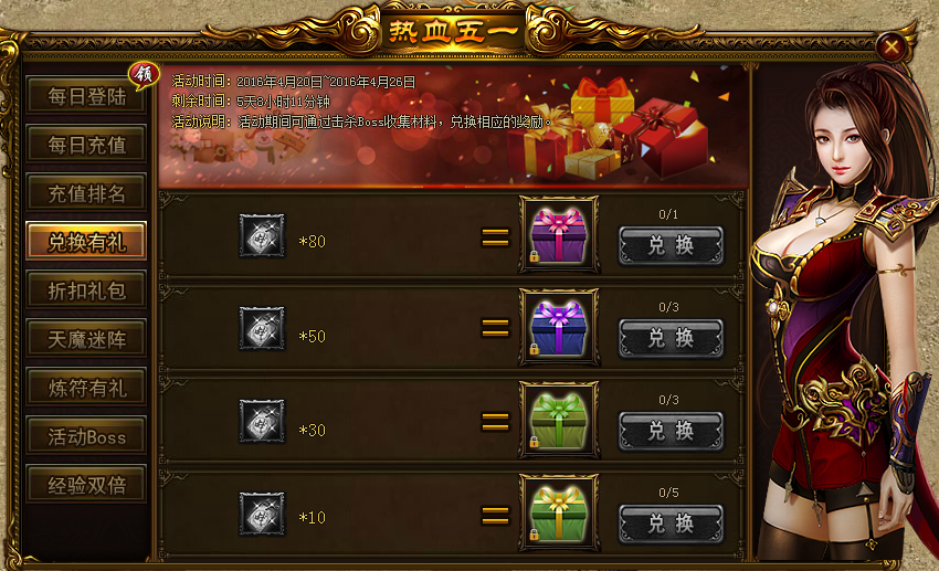 活动内容:活动期间,通过击杀BOSS收集材料,可兑换相应的奖励。