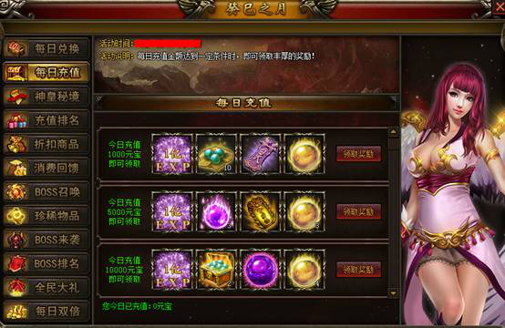 【活动说明】:每日充值金额达到一定条件时,可领取一份奖励。