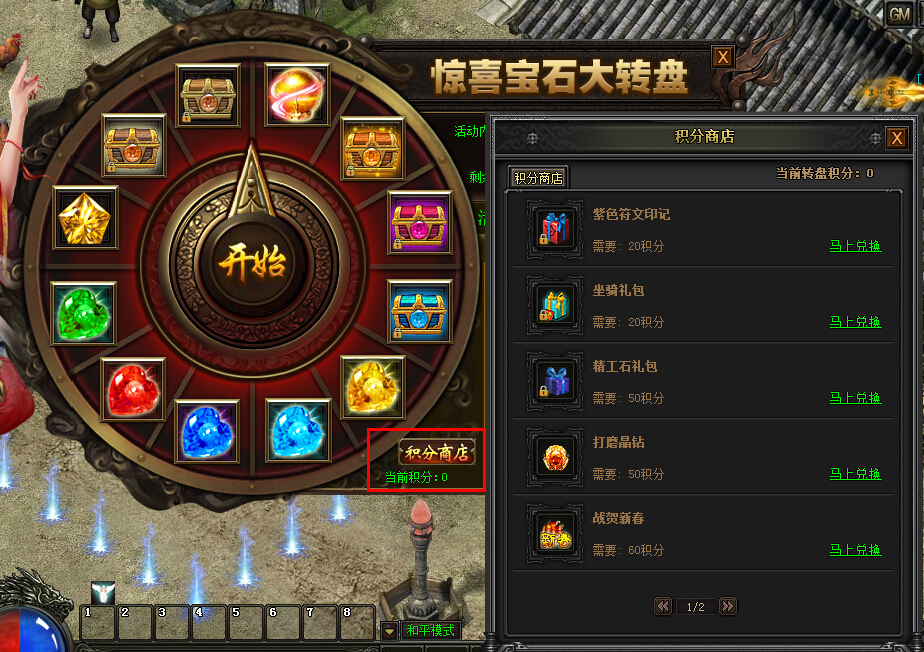 另外每次转盘还可以额外获得10点转盘积分,可在积分商店用来兑换紫色符文印记、浴火摩托、血魔帝袍等大量珍惜道具。