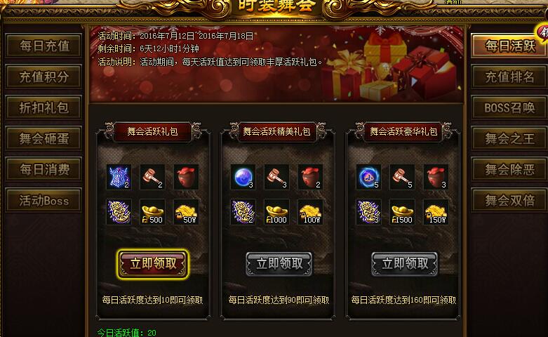 活动期间,每天活跃值达到一定条件可领取丰厚奖励!