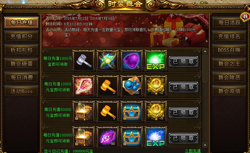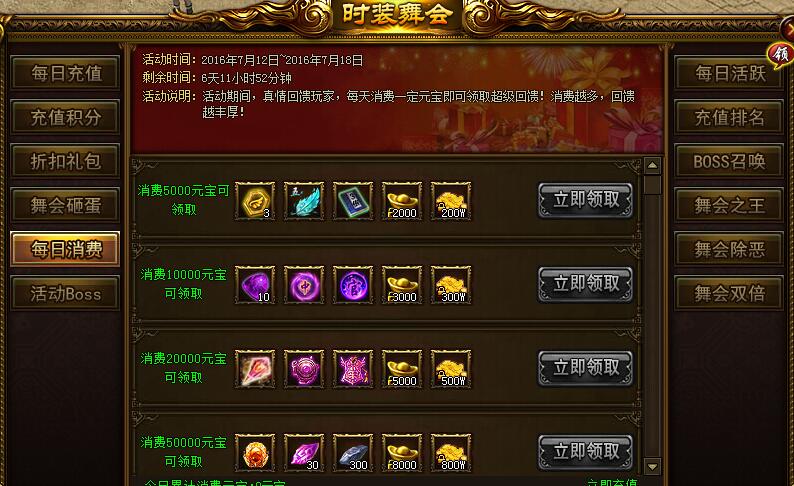 活动期间,每天充值一定数量元宝,即可领取豪礼,不要错过哟!