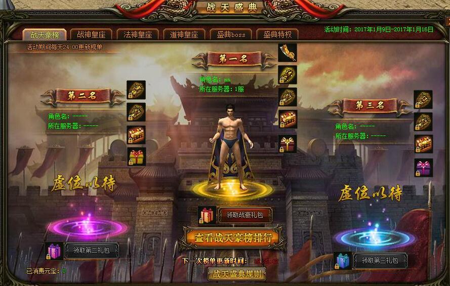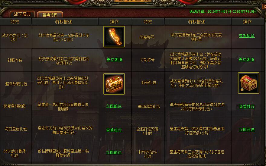 2、豪榜每天会有相应的礼包领取。而且豪榜前3名玩家所在服的所有玩家均能领