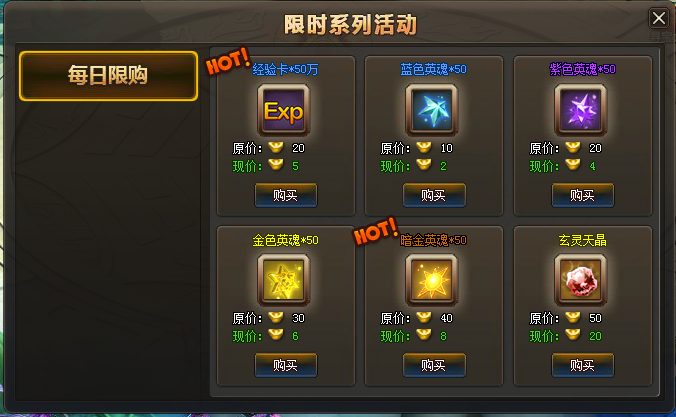 Ø每天随机出6种物品,每种物品每天限购1次,第二天0点刷新商店。