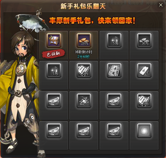 1.新手出生,可在新手礼包乐翻天中领取1级等级礼包;