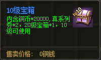 20级宝箱:铜币*5万、真系列券*4、20级装备升阶材料*12