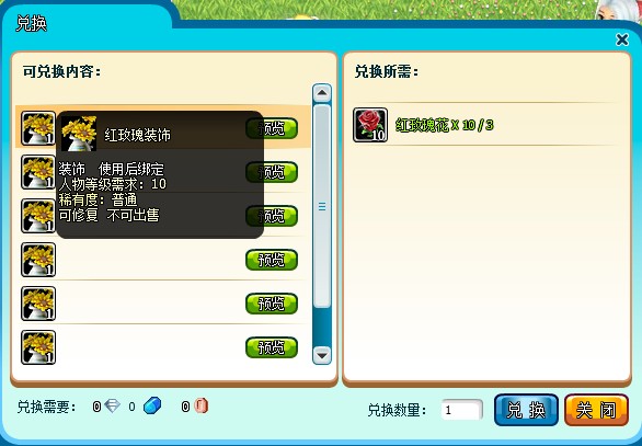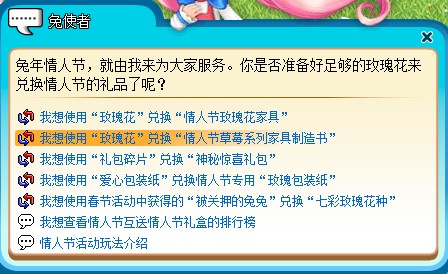 玩家收集了足够的各种颜色的玫瑰花后,可以使用对应的玫瑰花换取玫瑰花家具及情人节专用草莓系列家具。