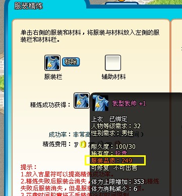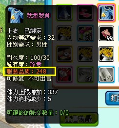 (1)物品稀有度在优质以上的服装就可以拥有品质属性。如下图: