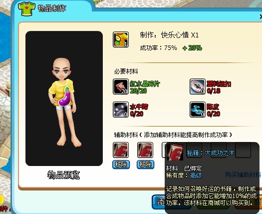 2、用配方书制作的服装,也可以获得服装品质,使用辅助材料“大成功之术”将获得更高的服装品质。如下图: