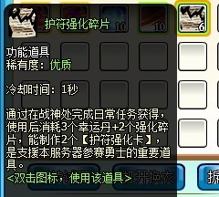 (2)点击碎片,通过消耗3个幸运丹和2个强化碎片,能制作出2个护符强化卡。幸运丹商城有售。